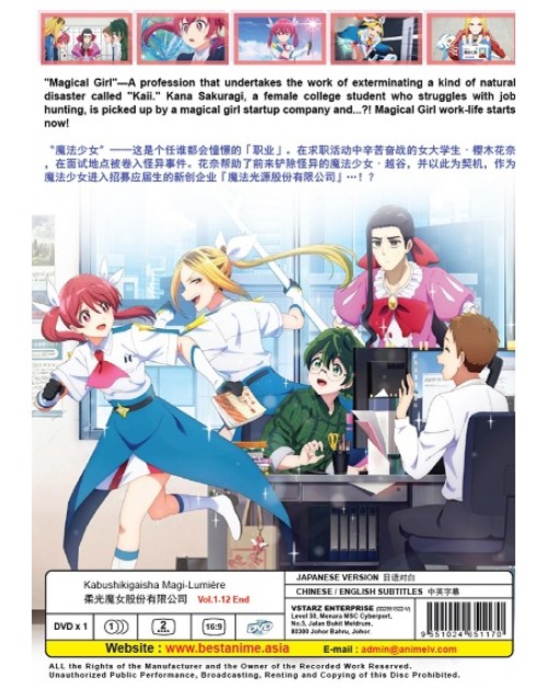 "Magical Girl"—A profession that undertakes the work of exterminating a kind of natural disaster called "Kaii." Kana Sakuragi, a female college student who struggles with job hunting, is picked up by a magical girl startup company and...?! Magical Girl work-life starts now!