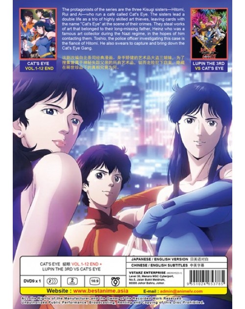 The protagonists of the series are the three Kisugi sisters—Hitomi, Rui and Ai—who run a café called Cat's Eye. The sisters lead a double life as a trio of highly skilled art thieves, leaving cards with the name "Cat's Eye" at the scene of their crimes. They steal works of art that belonged to their long-missing father, Heinz who was a famous art collector during the Nazi regime, in the hopes of him contacting them. Toshio, the police officer investigating this case is the fiancé of Hitomi. He also swears to capture and bring down the Cat's Eye Gang.