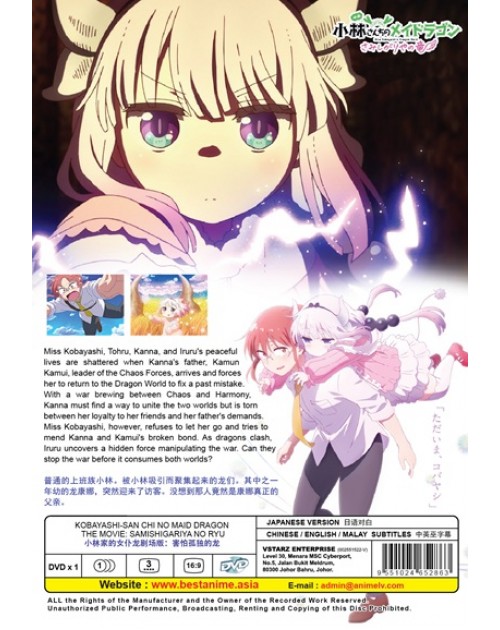 Miss Kobayashi, Tohru, Kanna, and Iruru's peaceful lives are shattered when Kanna's father, Kamun Kamui, leader of the Chaos Forces, arrives and forces her to return to the Dragon World to fix a past mistake. With a war brewing between Chaos and Harmony, Kanna must find a way to unite the two worlds but is torn between her loyalty to her friends and her father's demands. Miss Kobayashi, however, refuses to let her go and tries to mend Kanna and Kamui's broken bond. As dragons clash, Iruru uncovers a hidden force manipulating the war. Can they stop the war before it consumes both worlds?