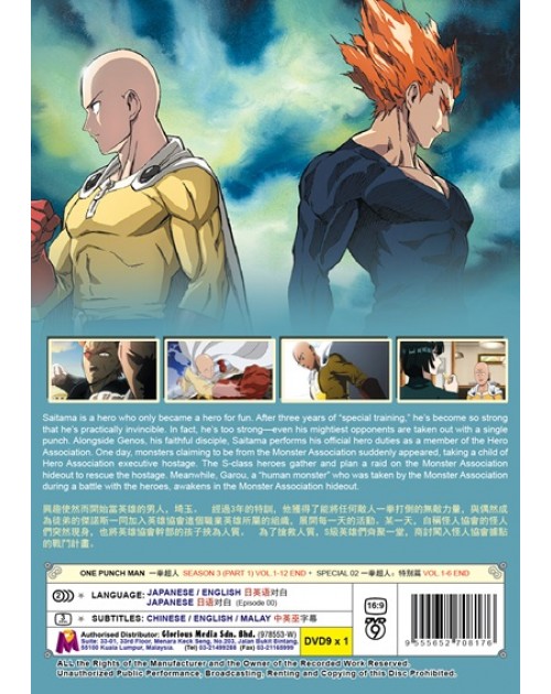 Saitama is a hero who only became a hero for fun. After three years of “special training,” he’s become so strong that he’s practically invincible. In fact, he’s too strong—even his mightiest opponents are taken out with a single punch. Alongside Genos, his faithful disciple, Saitama performs his official hero duties as a member of the Hero Association. One day, monsters claiming to be from the Monster Association suddenly appeared, taking a child of Hero Association executive hostage. The S-class heroes gather and plan a raid on the Monster Association hideout to rescue the hostage. Meanwhile, Garou, a “human monster” who was taken by the Monster Association during a battle with the heroes, awakens in the Monster Association hideout.