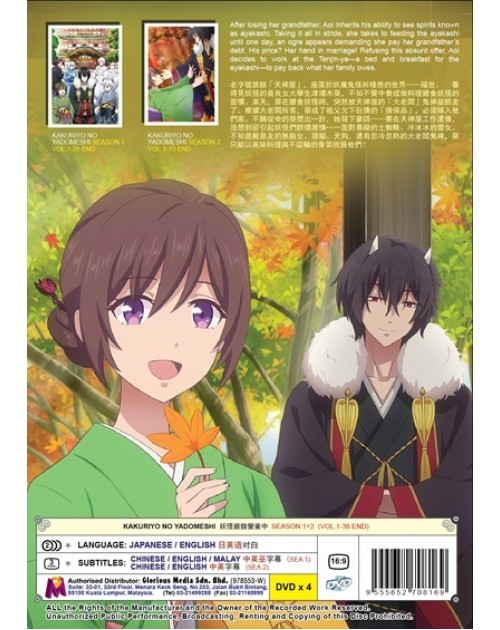 After losing her grandfather, Aoi inherits his ability to see spirits known as ayakashi. Taking it all in stride, she takes to feeding the ayakashi until one day, an ogre appears demanding she pay her grandfather’s debt. His price? Her hand in marriage! Refusing this absurd offer, Aoi decides to work at the Tenjin-ya—a bed and breakfast for the ayakashi—to pay back what her family owes.