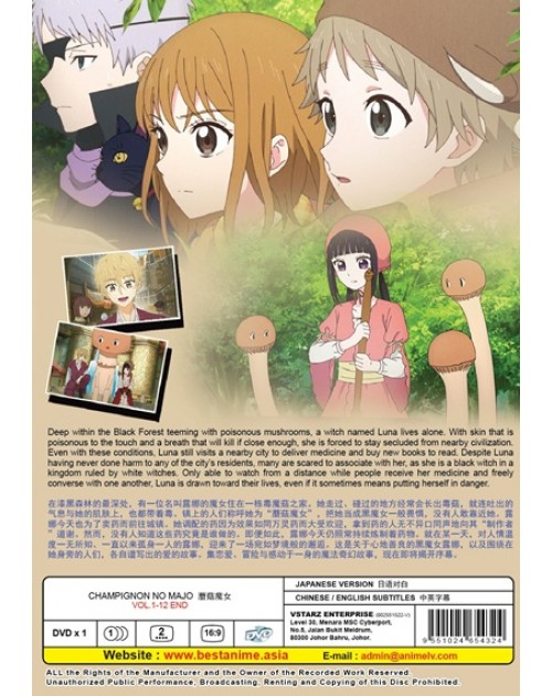 Deep within the Black Forest teeming with poisonous mushrooms, a witch named Luna lives alone. With skin that is poisonous to the touch and a breath that will kill if close enough, she is forced to stay secluded from nearby civilization. Even with these conditions, Luna still visits a nearby city to deliver medicine and buy new books to read. Despite Luna having never done harm to any of the city’s residents, many are scared to associate with her, as she is a black witch in a kingdom ruled by white witches. Only able to watch from a distance while people receive her medicine and freely converse with one another, Luna is drawn toward their lives, even if it sometimes means putting herself in danger.